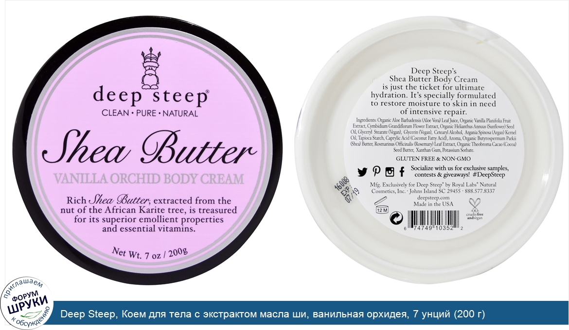 Друзья, если у вас есть отзыв/дополнение/комментарий/вопрос относительно Deep Steep, Коем для тела с экстрактом масла ши, ванильная орхидея, 7 унций (200 г) - напишите его ответом в эту тему (это будет полезно всему сообществу в целом и вам в отдельности).