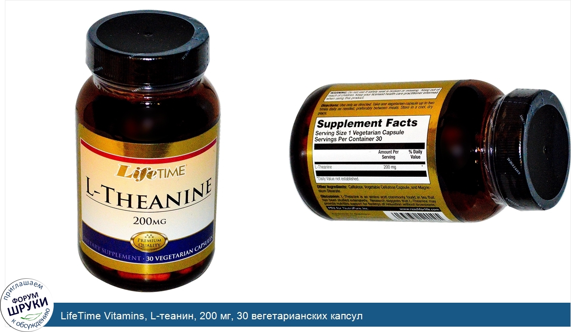 LifeTime Vitamins, L-теанин, 200 мг, 30 вегетарианских капсул