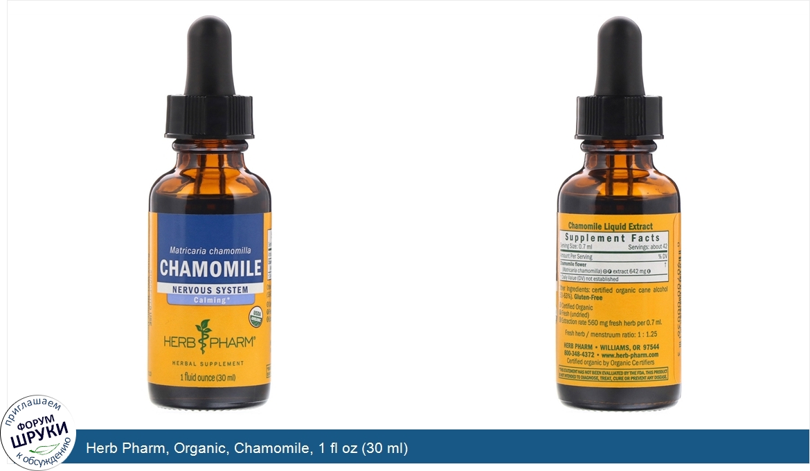 Друзья, если у вас есть отзыв/дополнение/комментарий/вопрос относительно Herb Pharm, Organic, Chamomile, 1 fl oz (30 ml) - напишите его ответом в эту тему (это будет полезно всему сообществу в целом и вам в отдельности).