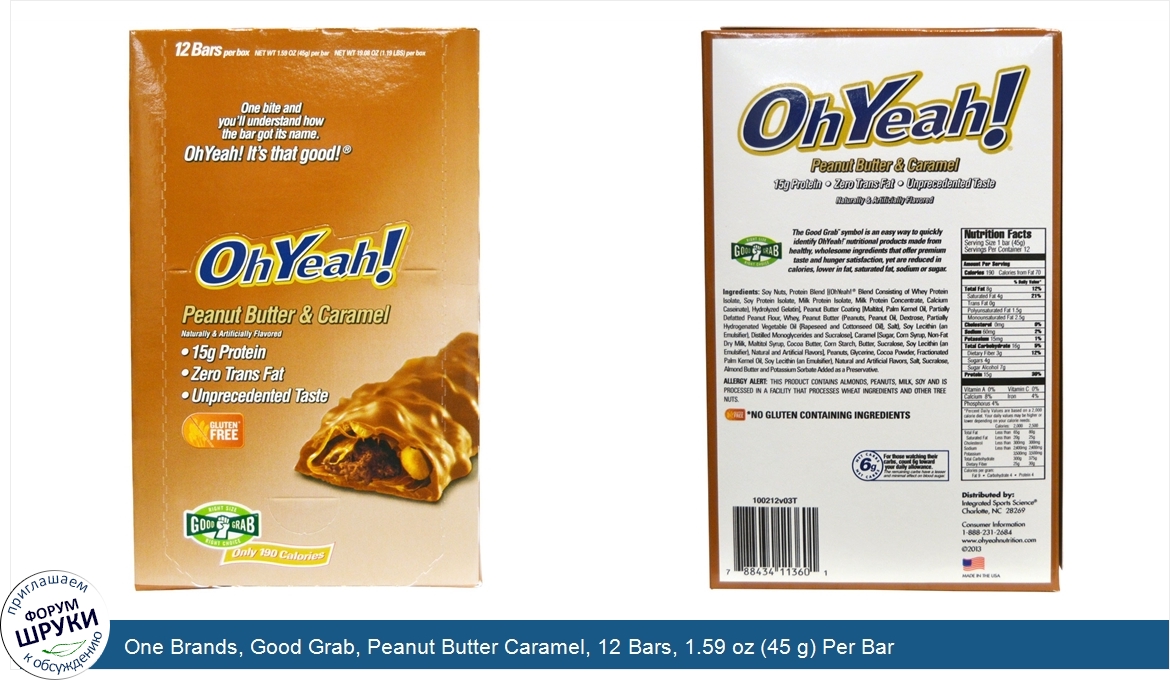 Друзья, если у вас есть отзыв/дополнение/комментарий/вопрос относительно One Brands, Good Grab, Peanut Butter Caramel, 12 Bars, 1.59 oz (45 g) Per Bar - напишите его ответом в эту тему (это будет полезно всему сообществу в целом и вам в отдельности).