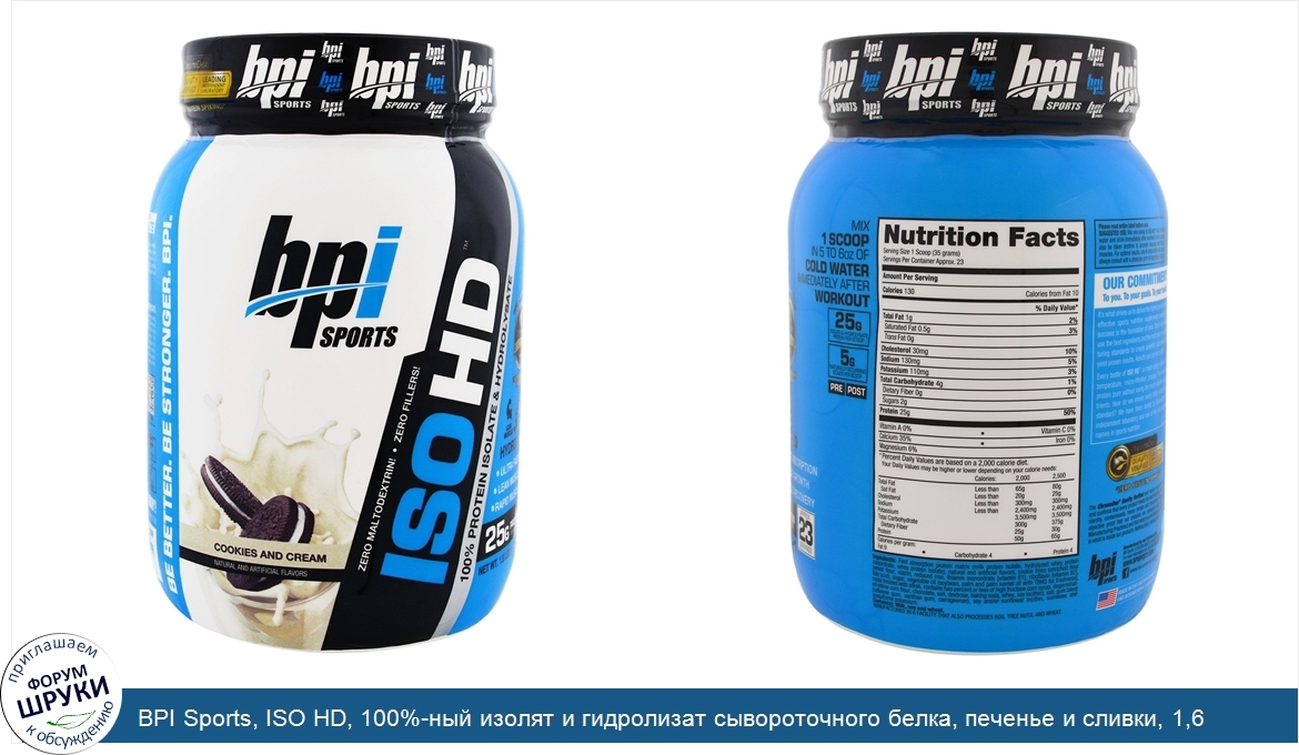Друзья, если у вас есть отзыв/дополнение/комментарий/вопрос относительно BPI Sports, ISO HD, 100%-ный изолят и гидролизат сывороточного белка, печенье и сливки, 1,6 фунта (740 г) - напишите его ответом в эту тему (это будет полезно всему сообществу в целом и вам в отдельности).
