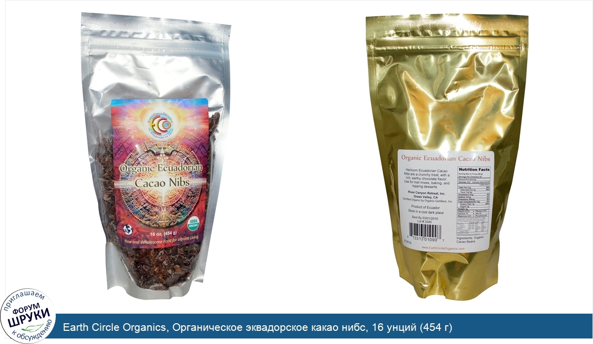Друзья, если у вас есть отзыв/дополнение/комментарий/вопрос относительно Earth Circle Organics, Органическое эквадорское какао нибс, 16 унций (454 г) - напишите его ответом в эту тему (это будет полезно всему сообществу в целом и вам в отдельности).