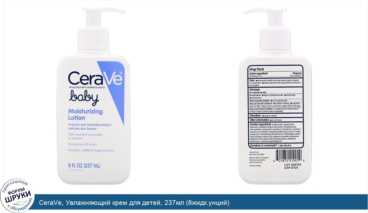 Друзья, если у вас есть отзыв/дополнение/комментарий/вопрос относительно CeraVe, Увлажняющий крем для детей, 237мл (8жидк.унций) - напишите его ответом в эту тему (это будет полезно всему сообществу в целом и вам в отдельности).
