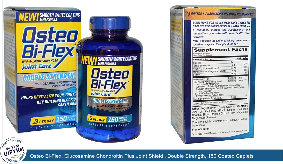 Друзья, если у вас есть отзыв/дополнение/комментарий/вопрос относительно Osteo Bi-Flex, Glucosamine Chondroitin Plus Joint Shield , Double Strength, 150 Coated Caplets - напишите его ответом в эту тему (это будет полезно всему сообществу в целом и вам в отдельности).
