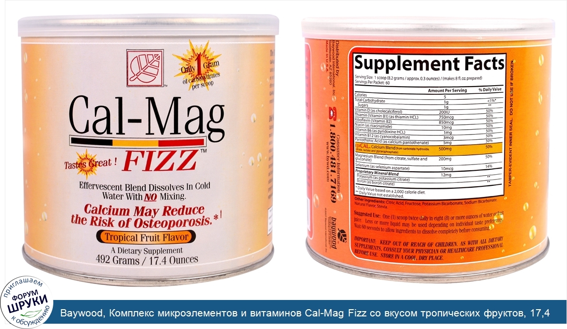 ru Baywood, Комплекс микроэлементов и витаминов Cal-Mag Fizz со вкусом тропических фруктов, 17,4 унций (492 г)