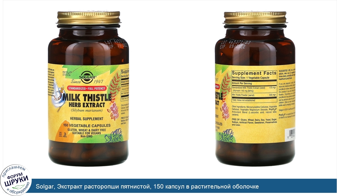 Друзья, если у вас есть отзыв/дополнение/комментарий/вопрос относительно Solgar, Экстракт расторопши пятнистой, 150 капсул в растительной оболочке - напишите его ответом в эту тему (это будет полезно всему сообществу в целом и вам в отдельности).