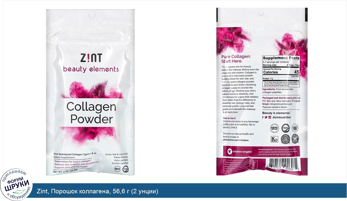 Друзья, если у вас есть отзыв/дополнение/комментарий/вопрос относительно Zint, Порошок коллагена, 56,6 г (2 унции) - напишите его ответом в эту тему (это будет полезно всему сообществу в целом и вам в отдельности).