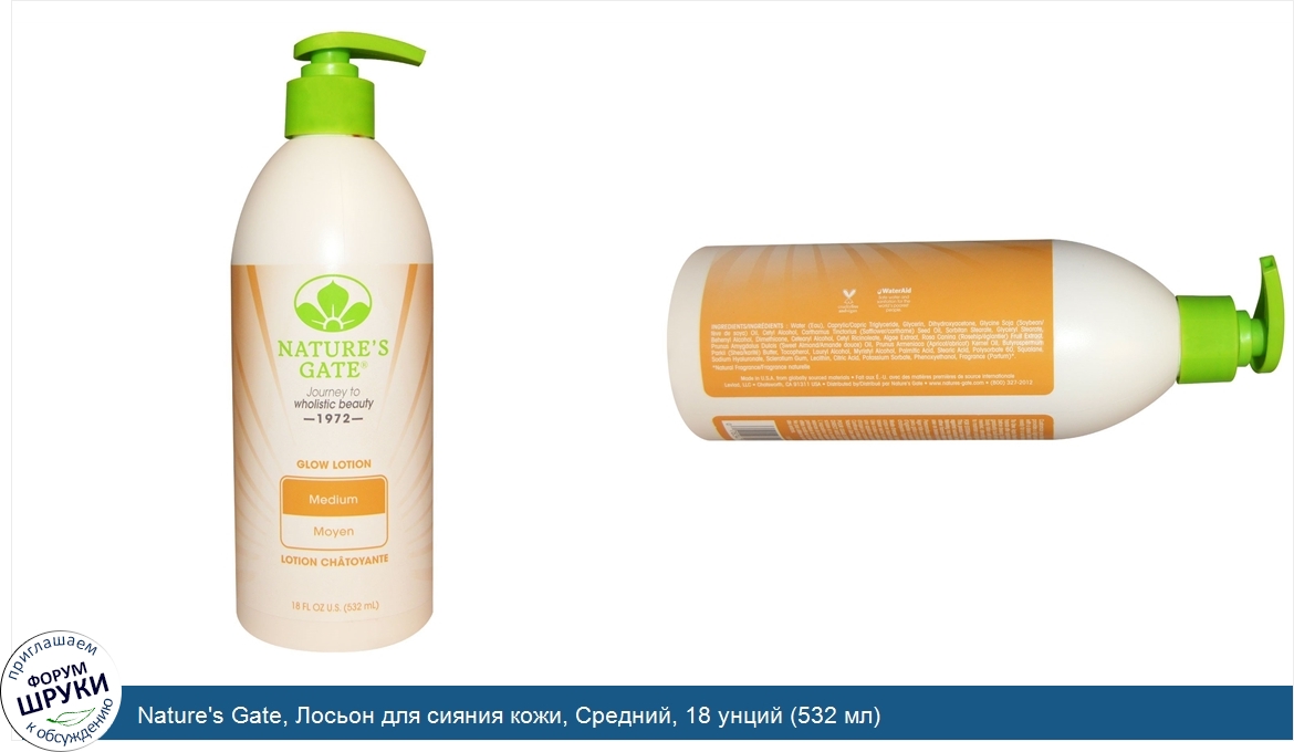 Nature's Gate, Лосьон для сияния кожи, Средний, 18 унций (532 мл)
