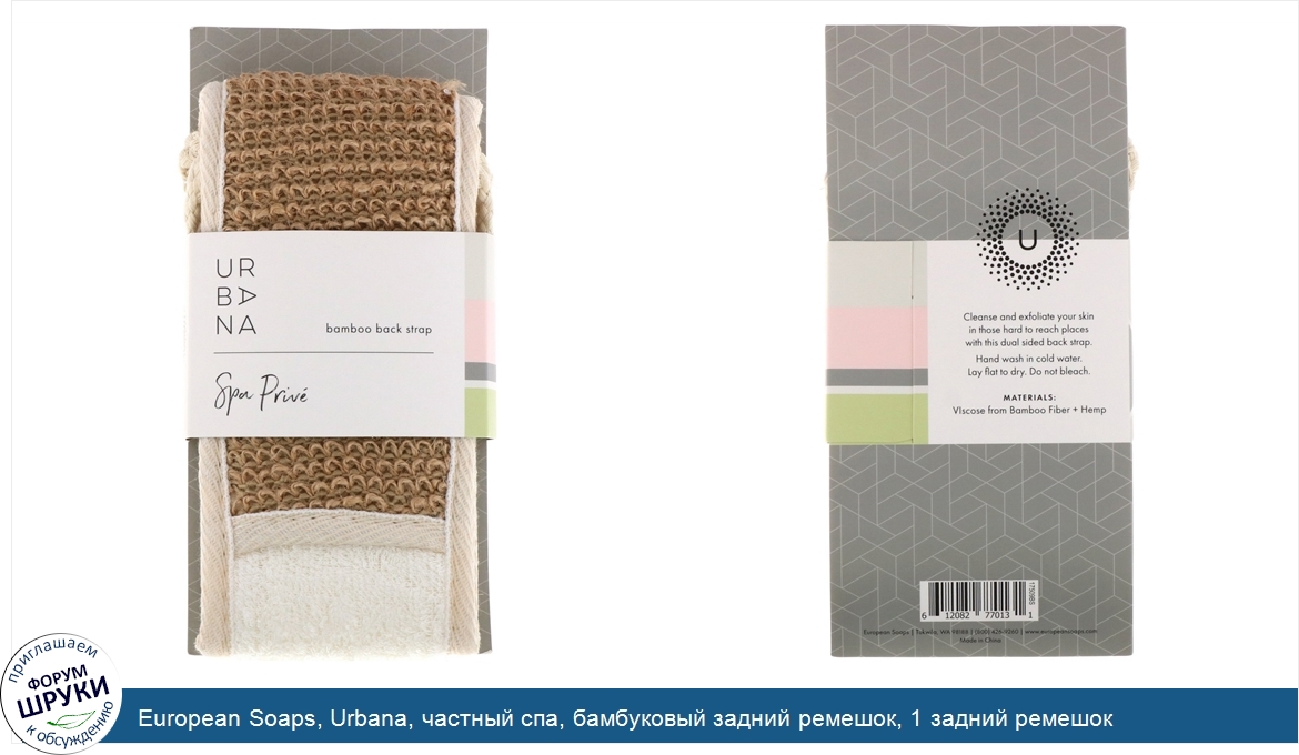 Друзья, если у вас есть отзыв/дополнение/комментарий/вопрос относительно European Soaps, Urbana, частный спа, бамбуковый задний ремешок, 1 задний ремешок - напишите его ответом в эту тему (это будет полезно всему сообществу в целом и вам в отдельности).