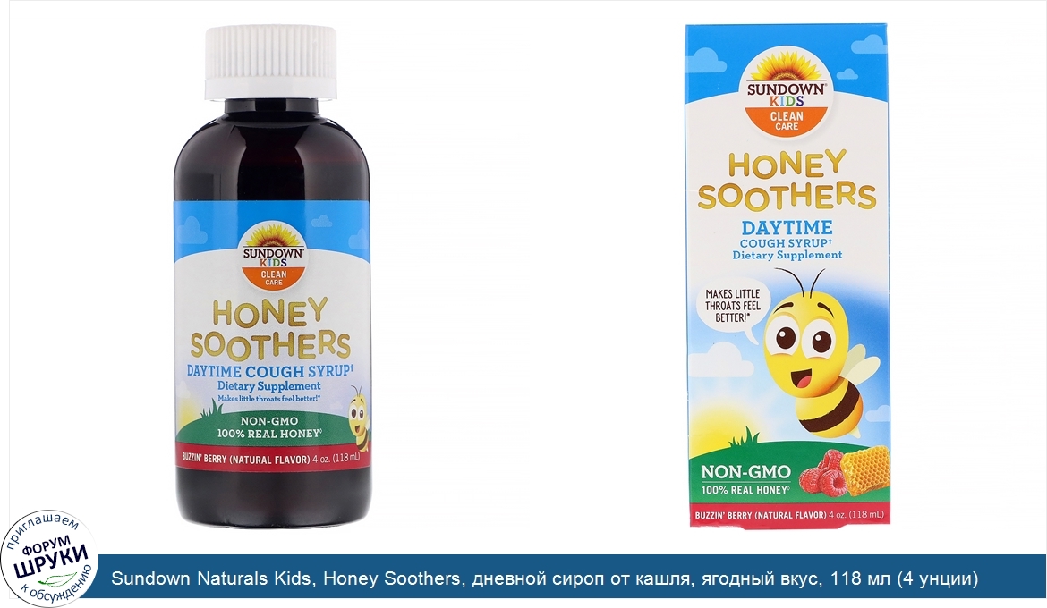 Друзья, если у вас есть отзыв/дополнение/комментарий/вопрос относительно Sundown Naturals Kids, Honey Soothers, дневной сироп от кашля, ягодный вкус, 118 мл (4 унции) - напишите его ответом в эту тему (это будет полезно всему сообществу в целом и вам в отдельности).