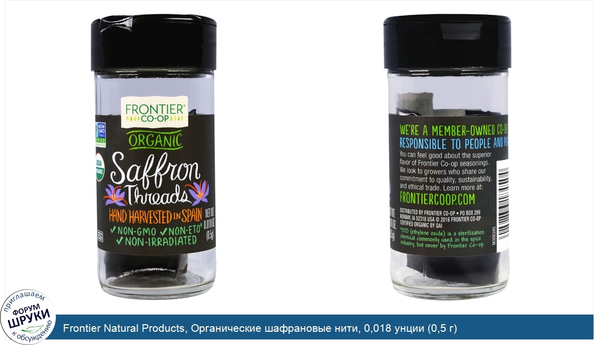 Frontier Natural Products, Органические шафрановые нити, 0,018 унции (0,5 г)