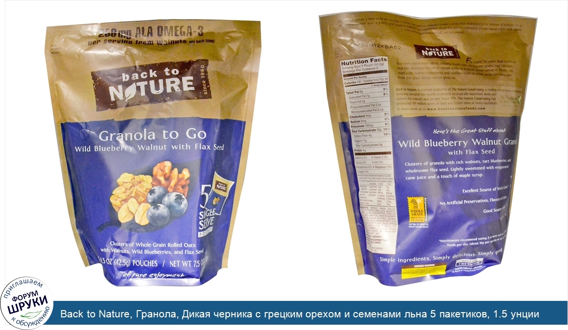 Друзья, если у вас есть отзыв/дополнение/комментарий/вопрос относительно Back to Nature, Гранола, Дикая черника с грецким орехом и семенами льна 5 пакетиков, 1.5 унции (42.5 г) каждый - напишите его ответом в эту тему (это будет полезно всему сообществу в целом и вам в отдельности).