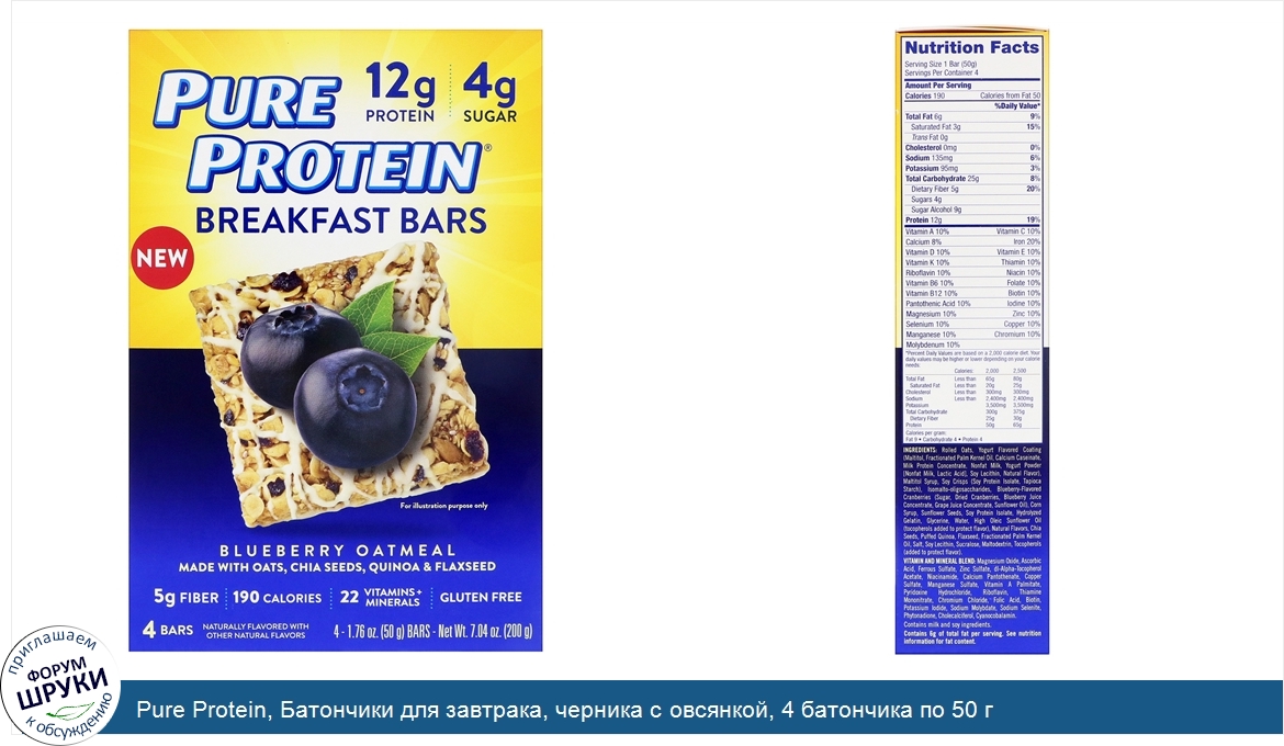 Друзья, если у вас есть отзыв/дополнение/комментарий/вопрос относительно Pure Protein, Батончики для завтрака, черника с овсянкой, 4 батончика по 50 г - напишите его ответом в эту тему (это будет полезно всему сообществу в целом и вам в отдельности).