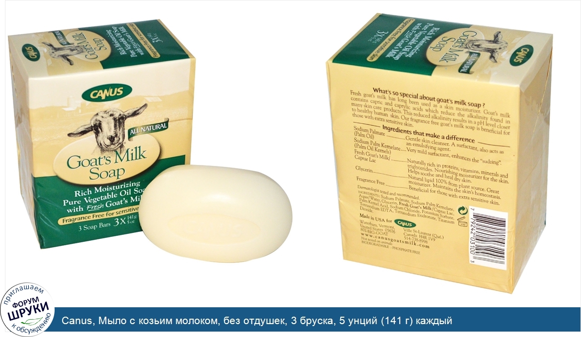 Друзья, если у вас есть отзыв/дополнение/комментарий/вопрос относительно Canus, Мыло с козьим молоком, без отдушек, 3 бруска, 5 унций (141 г) каждый - напишите его ответом в эту тему (это будет полезно всему сообществу в целом и вам в отдельности).
