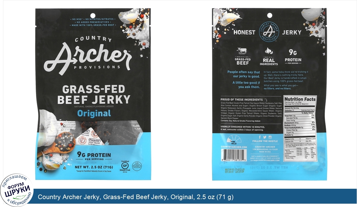 Друзья, если у вас есть отзыв/дополнение/комментарий/вопрос относительно Country Archer Jerky, Grass-Fed Beef Jerky, Original, 2.5 oz (71 g) - напишите его ответом в эту тему (это будет полезно всему сообществу в целом и вам в отдельности).
