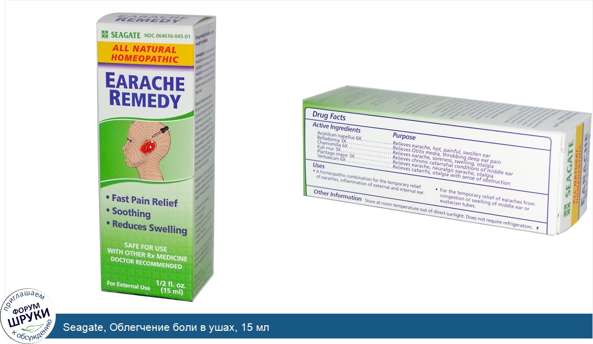 Seagate, Облегчение боли в ушах, 15 мл
