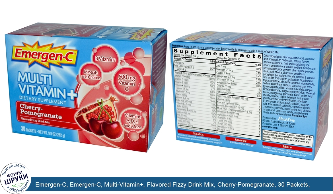 Emergen-C, Emergen-C, Multi-Vitamin+, Flavored Fizzy Drink Mix, Cherry-Pomegranate, 30 Packets, (9.4 g) Each