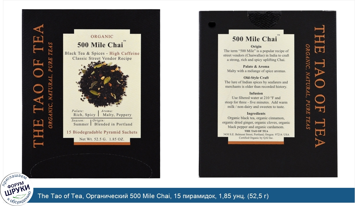 Друзья, если у вас есть отзыв/дополнение/комментарий/вопрос относительно The Tao of Tea, Органический 500 Mile Chai, 15 пирамидок, 1,85 унц. (52,5 г) - напишите его ответом в эту тему (это будет полезно всему сообществу в целом и вам в отдельности).