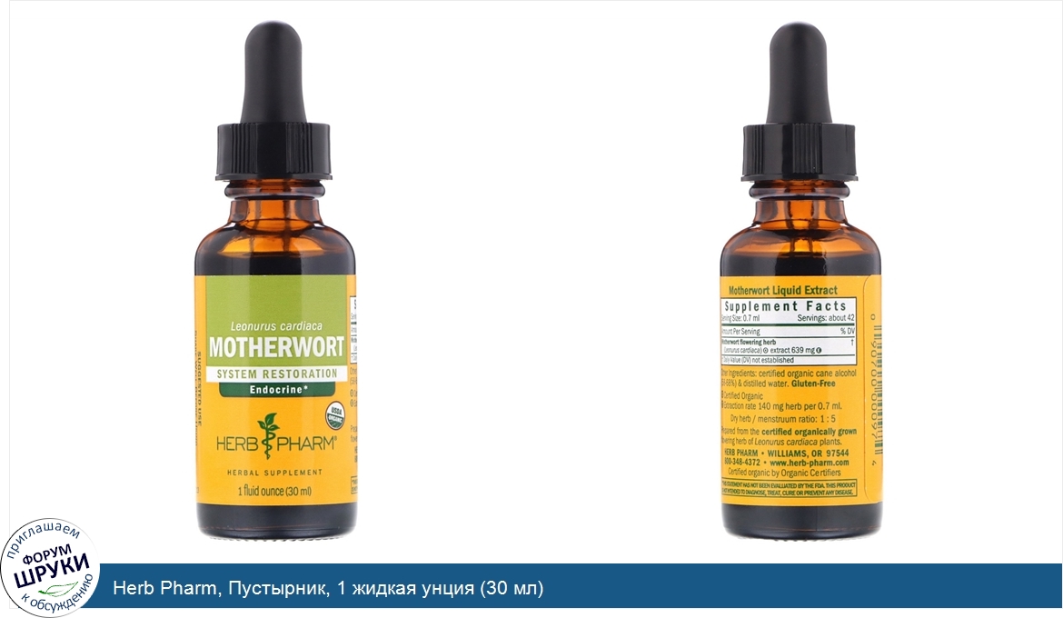 Друзья, если у вас есть отзыв/дополнение/комментарий/вопрос относительно Herb Pharm, Пустырник, 1 жидкая унция (30 мл) - напишите его ответом в эту тему (это будет полезно всему сообществу в целом и вам в отдельности).
