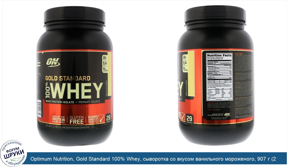 ru Optimum Nutrition, Gold Standard 100% Whey, сыворотка со вкусом ванильного мороженого, 907 г (2 фунта)