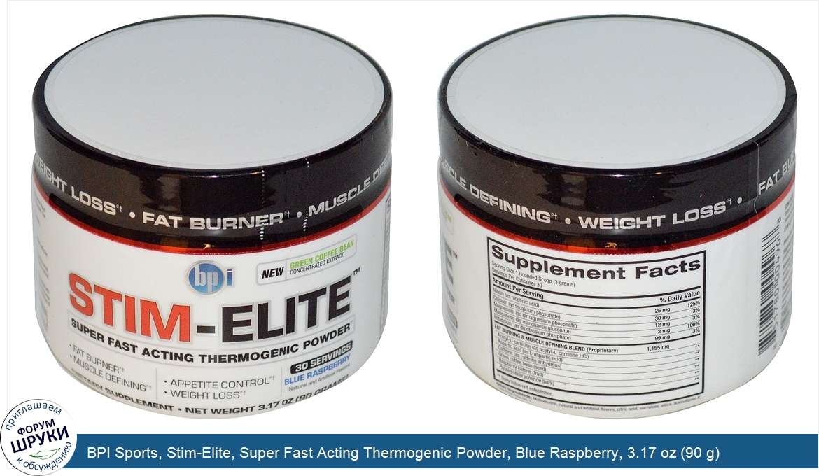 Друзья, если у вас есть отзыв/дополнение/комментарий/вопрос относительно BPI Sports, Stim-Elite, Super Fast Acting Thermogenic Powder, Blue Raspberry, 3.17 oz (90 g) - напишите его ответом в эту тему (это будет полезно всему сообществу в целом и вам в отдельности).