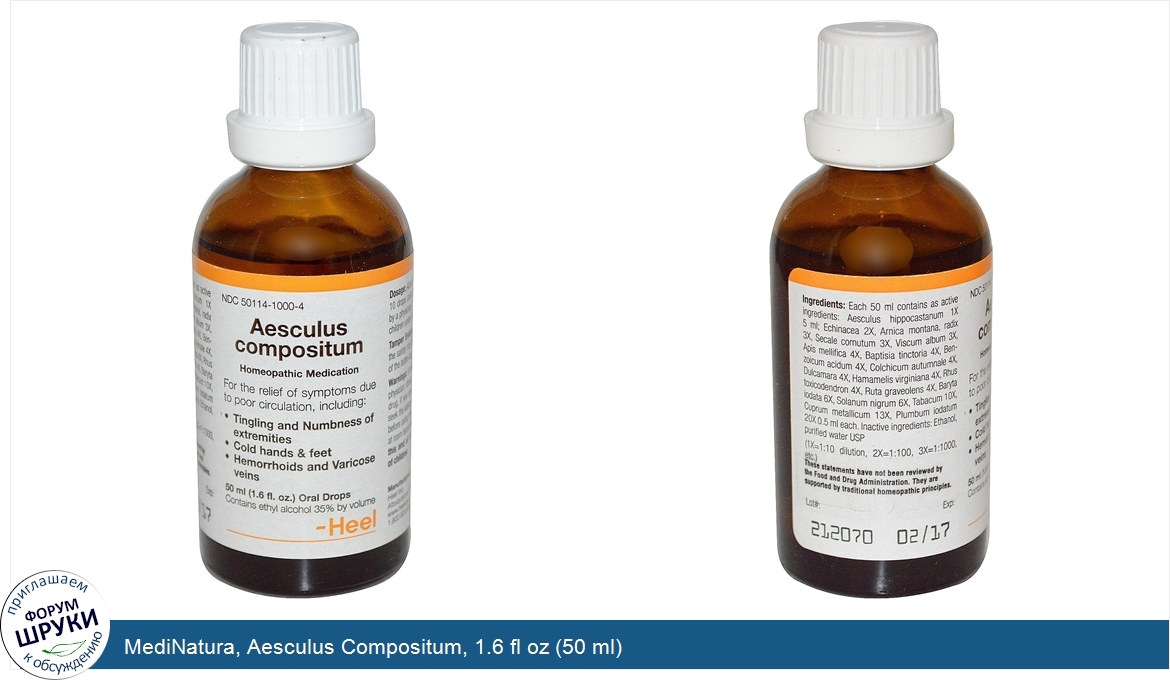 Друзья, если у вас есть отзыв/дополнение/комментарий/вопрос относительно MediNatura, Aesculus Compositum, 1.6 fl oz (50 ml) - напишите его ответом в эту тему (это будет полезно всему сообществу в целом и вам в отдельности).