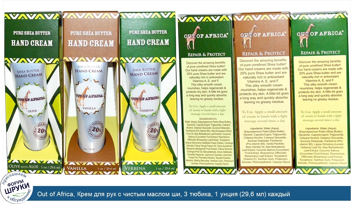 Друзья, если у вас есть отзыв/дополнение/комментарий/вопрос относительно Out of Africa, Крем для рук с чистым маслом ши, 3 тюбика, 1 унция (29,6 мл) каждый - напишите его ответом в эту тему (это будет полезно всему сообществу в целом и вам в отдельности).