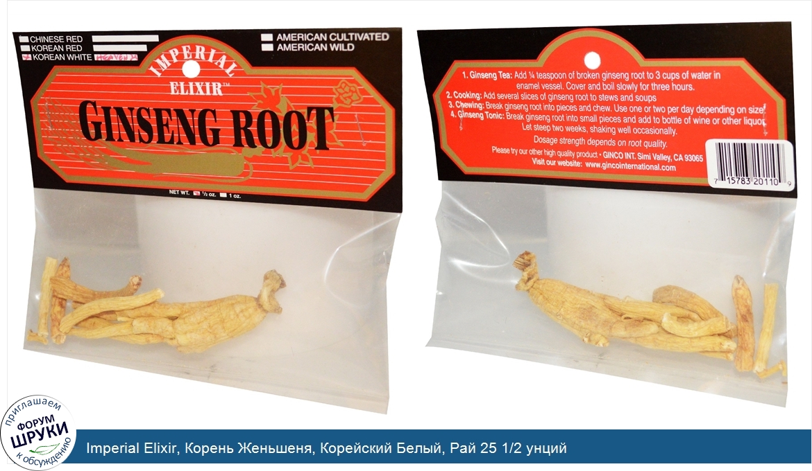 Imperial Elixir, Корень Женьшеня, Корейский Белый, Рай 25 1/2 унций