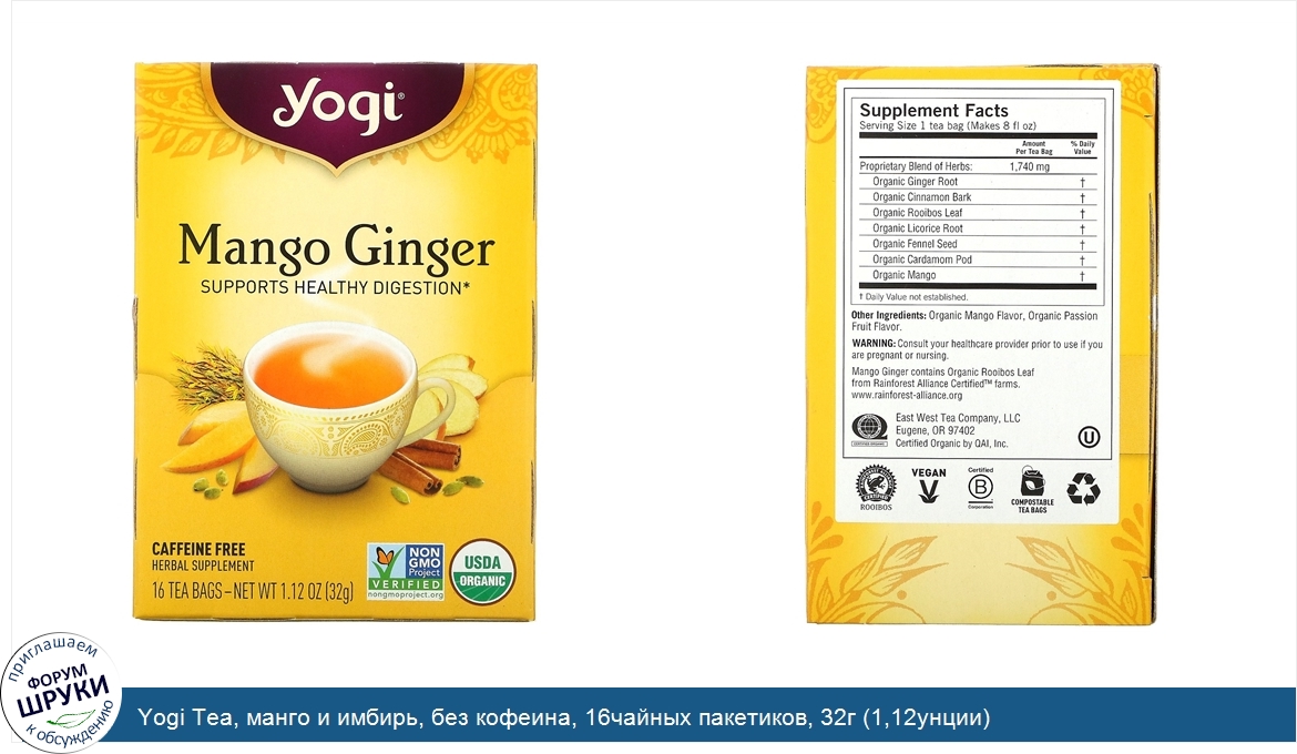 Друзья, если у вас есть отзыв/дополнение/комментарий/вопрос относительно Yogi Tea, манго и имбирь, без кофеина, 16чайных пакетиков, 32г (1,12унции) - напишите его ответом в эту тему (это будет полезно всему сообществу в целом и вам в отдельности).