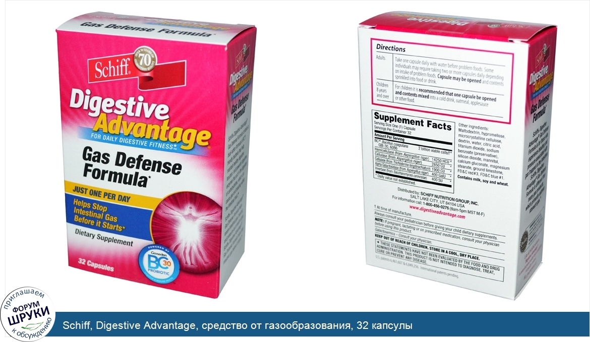 Друзья, если у вас есть отзыв/дополнение/комментарий/вопрос относительно Schiff, Digestive Advantage, средство от газообразования, 32 капсулы - напишите его ответом в эту тему (это будет полезно всему сообществу в целом и вам в отдельности).