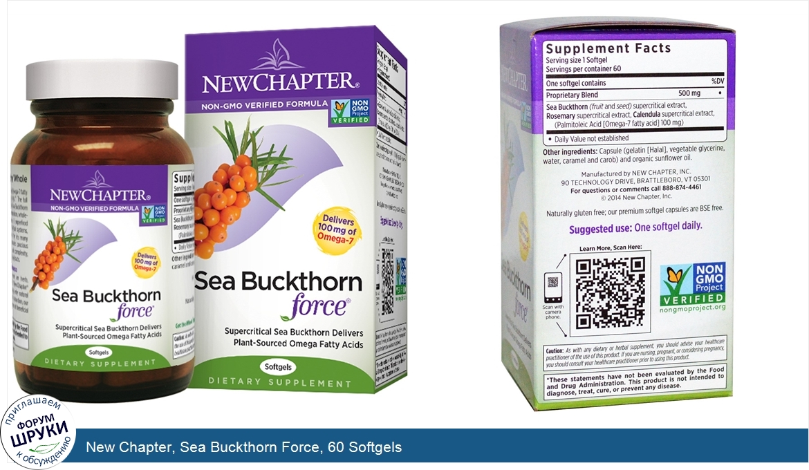 Друзья, если у вас есть отзыв/дополнение/комментарий/вопрос относительно New Chapter, Sea Buckthorn Force, 60 Softgels - напишите его ответом в эту тему (это будет полезно всему сообществу в целом и вам в отдельности).