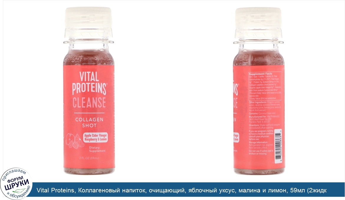 ru Vital Proteins, Коллагеновый напиток, очищающий, яблочный уксус, малина и лимон, 59мл (2жидк.унции)