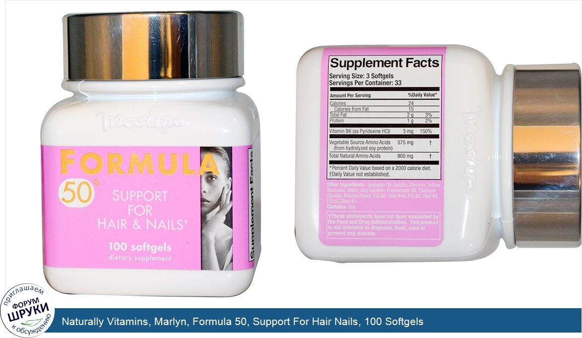 Naturally Vitamins, Marlyn, Formula 50, Support For Hair Nails, 100 Softgels