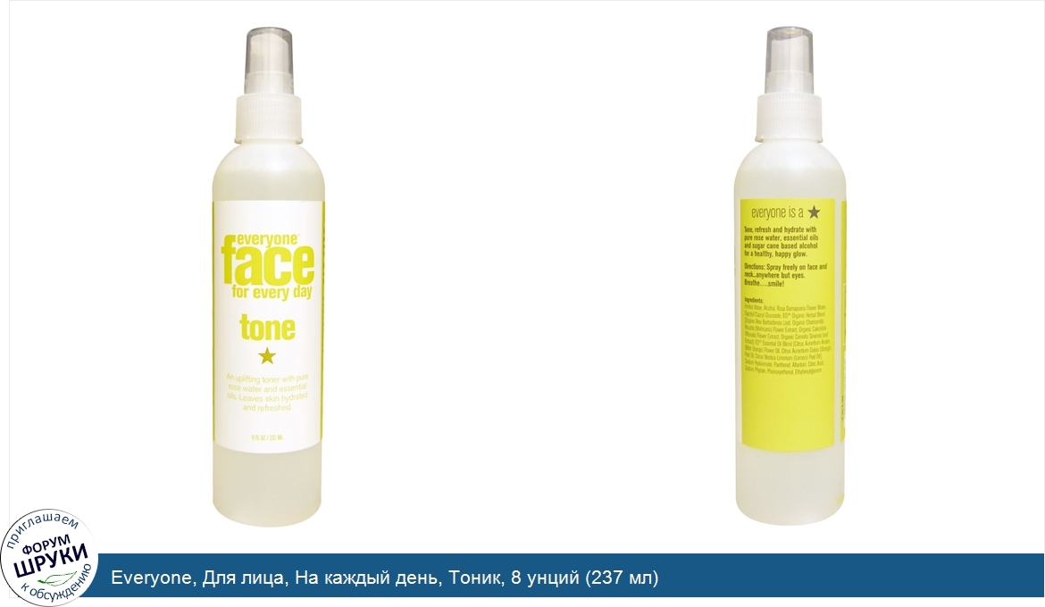 Друзья, если у вас есть отзыв/дополнение/комментарий/вопрос относительно Everyone, Для лица, На каждый день, Тоник, 8 унций (237 мл) - напишите его ответом в эту тему (это будет полезно всему сообществу в целом и вам в отдельности).