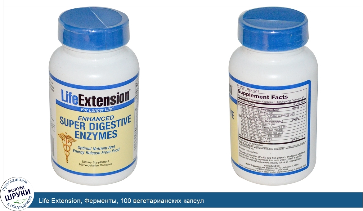 Life Extension, Ферменты, 100 вегетарианских капсул