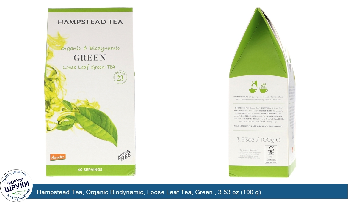 [DESCRIPT]Tea No. 23. Demeter. Plastic Free. 40 Servings. USDA Organic. Our pure Biodynamic Green Tea leaves are from prized Tea estates in Darjeeling. After harvesting the fresh leaves are steamed to capture their natural freshness and then gently heated to give a mouth-watering flavor. Enjoy on its own. At Hampstead Tea our pledge is to support the growing of the finest Biodynamic Organic Teas and Botanicals which resolves around the dual notions of great taste and peace of mind. The Tea and Botanicals are farmed intuitively, responsibly and in tune with nature, always nurturing the purity of the source.[/DESCRIPT]... (описание дополняется)