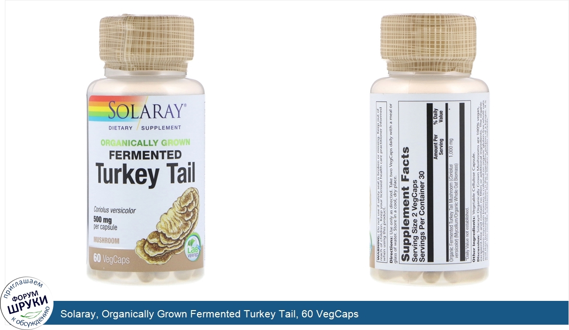 Друзья, если у вас есть отзыв/дополнение/комментарий/вопрос относительно Solaray, Organically Grown Fermented Turkey Tail, 60 VegCaps - напишите его ответом в эту тему (это будет полезно всему сообществу в целом и вам в отдельности).