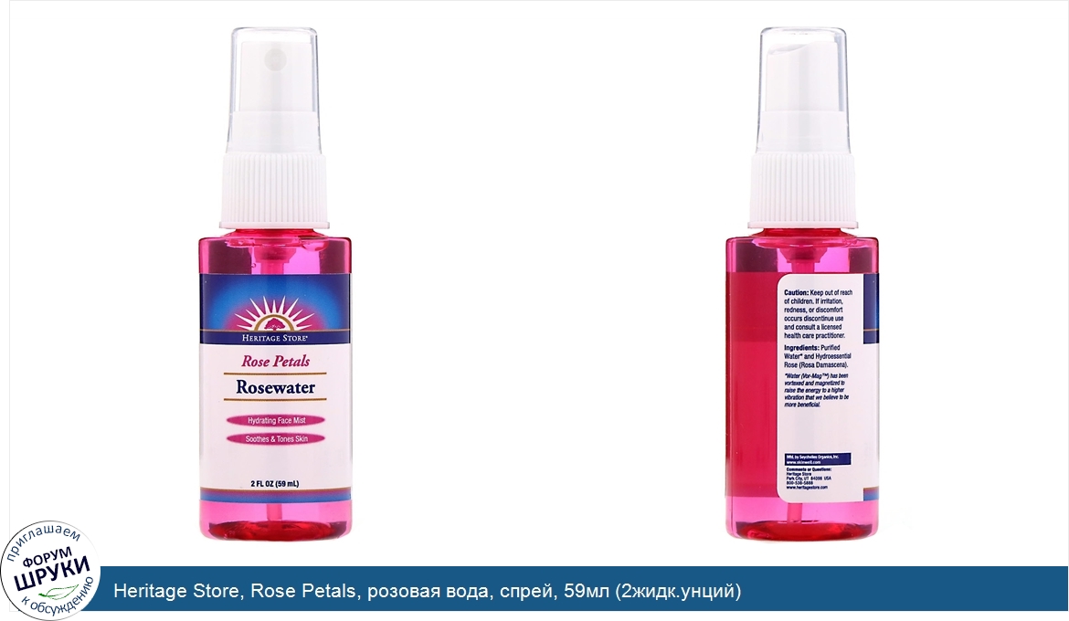 Heritage Store, Rose Petals, розовая вода, спрей, 59мл (2жидк.унций)