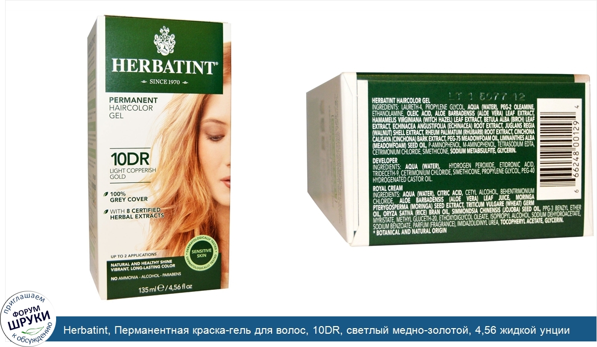 Друзья, если у вас есть отзыв/дополнение/комментарий/вопрос относительно Herbatint, Перманентная краска-гель для волос, 10DR, светлый медно-золотой, 4,56 жидкой унции (135 мл) - напишите его ответом в эту тему (это будет полезно всему сообществу в целом и вам в отдельности).