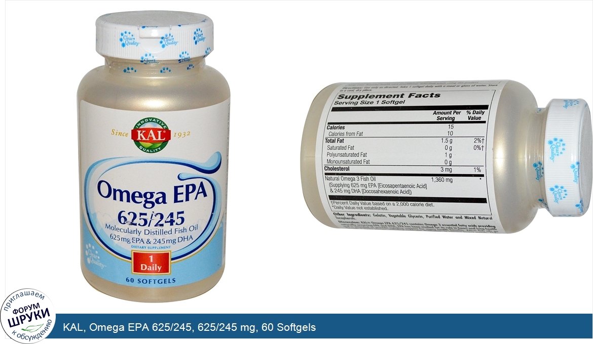 Друзья, если у вас есть отзыв/дополнение/комментарий/вопрос относительно KAL, Omega EPA 625/245, 625/245 mg, 60 Softgels - напишите его ответом в эту тему (это будет полезно всему сообществу в целом и вам в отдельности).