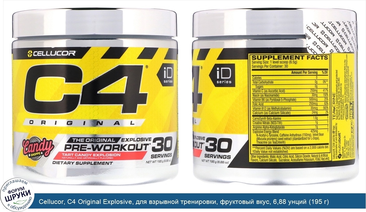 Друзья, если у вас есть отзыв/дополнение/комментарий/вопрос относительно Cellucor, C4 Original Explosive, для взрывной тренировки, фруктовый вкус, 6,88 унций (195 г) - напишите его ответом в эту тему (это будет полезно всему сообществу в целом и вам в отдельности).
