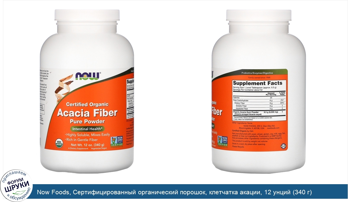 Друзья, если у вас есть отзыв/дополнение/комментарий/вопрос относительно Now Foods, Сертифицированный органический порошок, клетчатка акации, 12 унций (340 г) - напишите его ответом в эту тему (это будет полезно всему сообществу в целом и вам в отдельности).