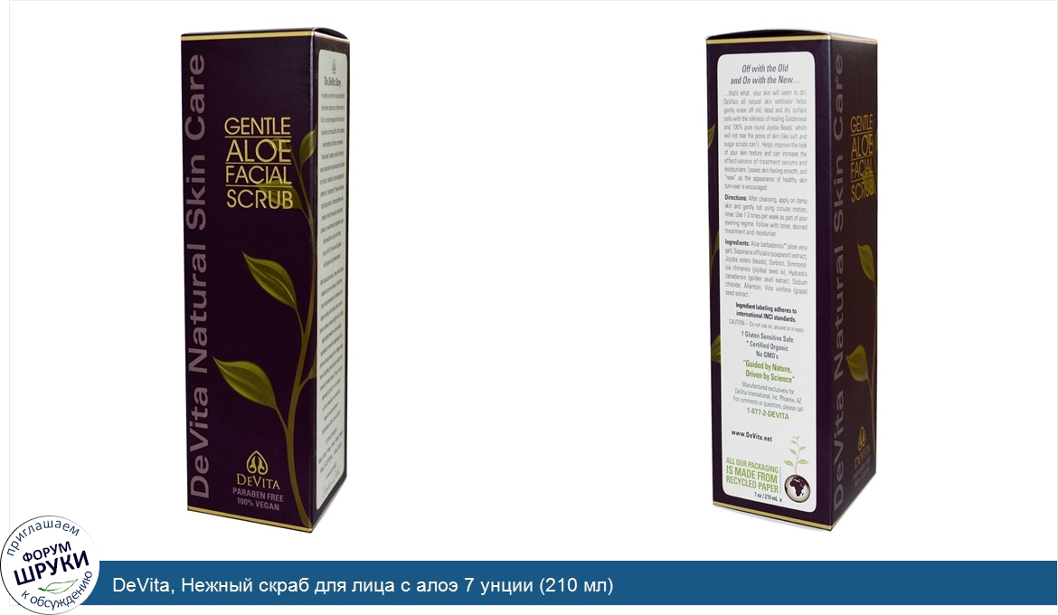 Друзья, если у вас есть отзыв/дополнение/комментарий/вопрос относительно DeVita, Нежный скраб для лица с алоэ 7 унции (210 мл) - напишите его ответом в эту тему (это будет полезно всему сообществу в целом и вам в отдельности).