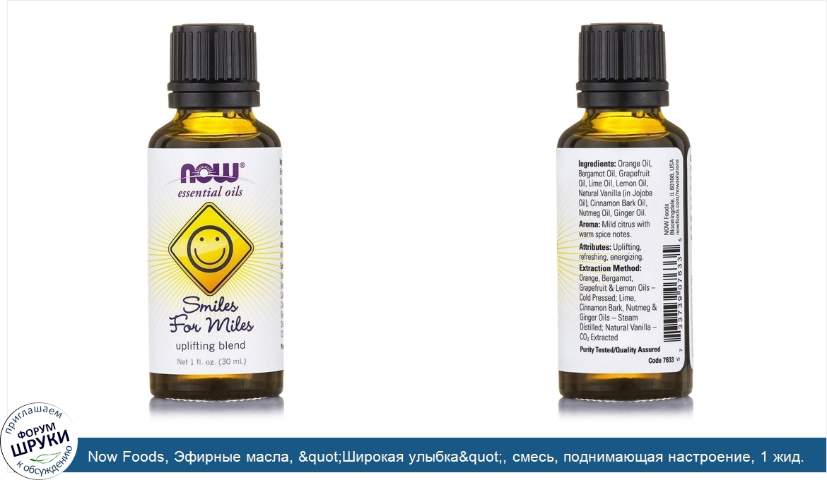 Друзья, если у вас есть отзыв/дополнение/комментарий/вопрос относительно Now Foods, Эфирные масла, "Широкая улыбка", смесь, поднимающая настроение, 1 жид. унция(30 мл) - напишите его ответом в эту тему (это будет полезно всему сообществу в целом и вам в отдельности).