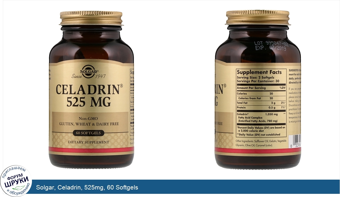 Друзья, если у вас есть отзыв/дополнение/комментарий/вопрос относительно Solgar, Celadrin, 525mg, 60 Softgels - напишите его ответом в эту тему (это будет полезно всему сообществу в целом и вам в отдельности).