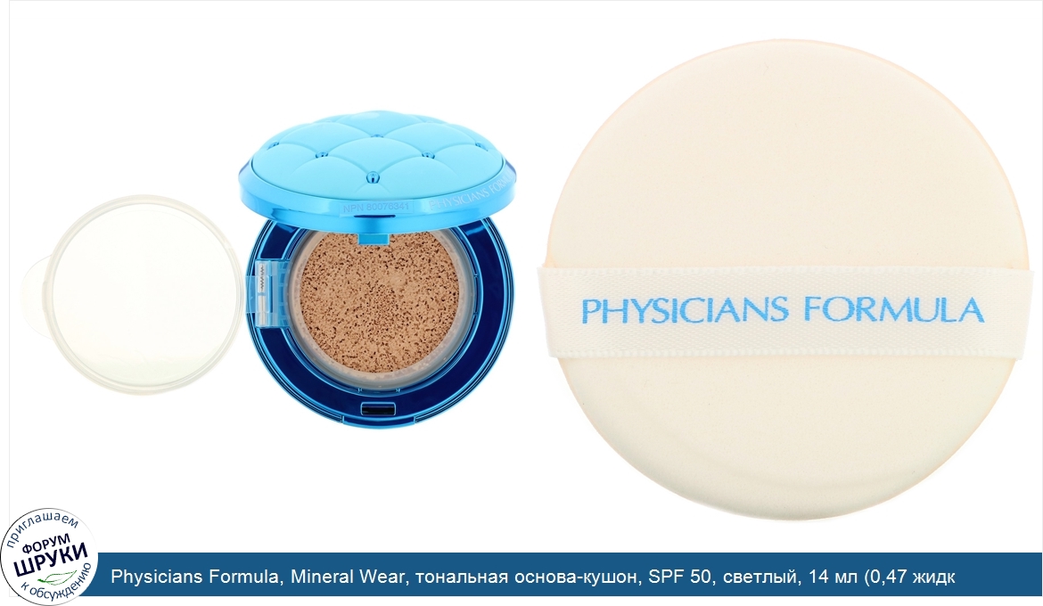 Physicians Formula, Mineral Wear, тональная основа-кушон, SPF 50, светлый, 14 мл (0,47 жидк.унции)