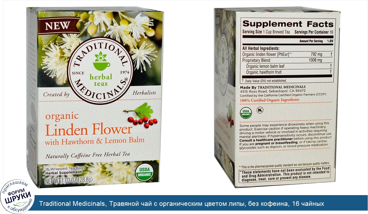 Друзья, если у вас есть отзыв/дополнение/комментарий/вопрос относительно Traditional Medicinals, Травяной чай с органическим цветом липы, без кофеина, 16 чайных пакетиков, 28,8 г - напишите его ответом в эту тему (это будет полезно всему сообществу в целом и вам в отдельности).