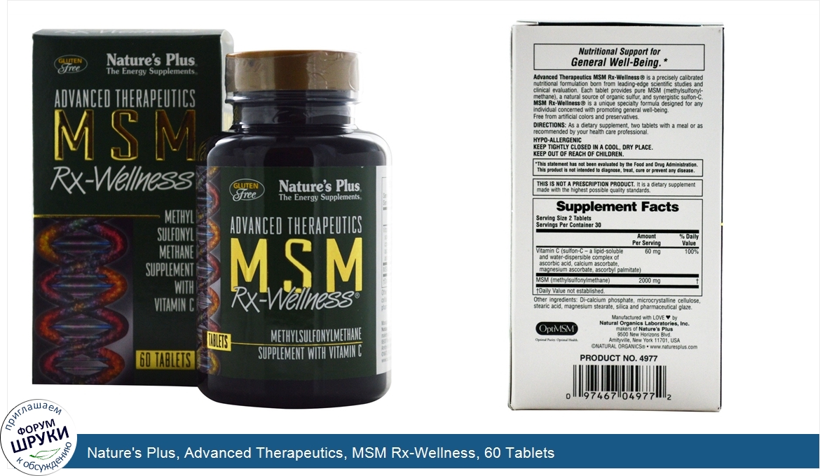 Друзья, если у вас есть отзыв/дополнение/комментарий/вопрос относительно Nature's Plus, Advanced Therapeutics, MSM Rx-Wellness, 60 Tablets - напишите его ответом в эту тему (это будет полезно всему сообществу в целом и вам в отдельности).