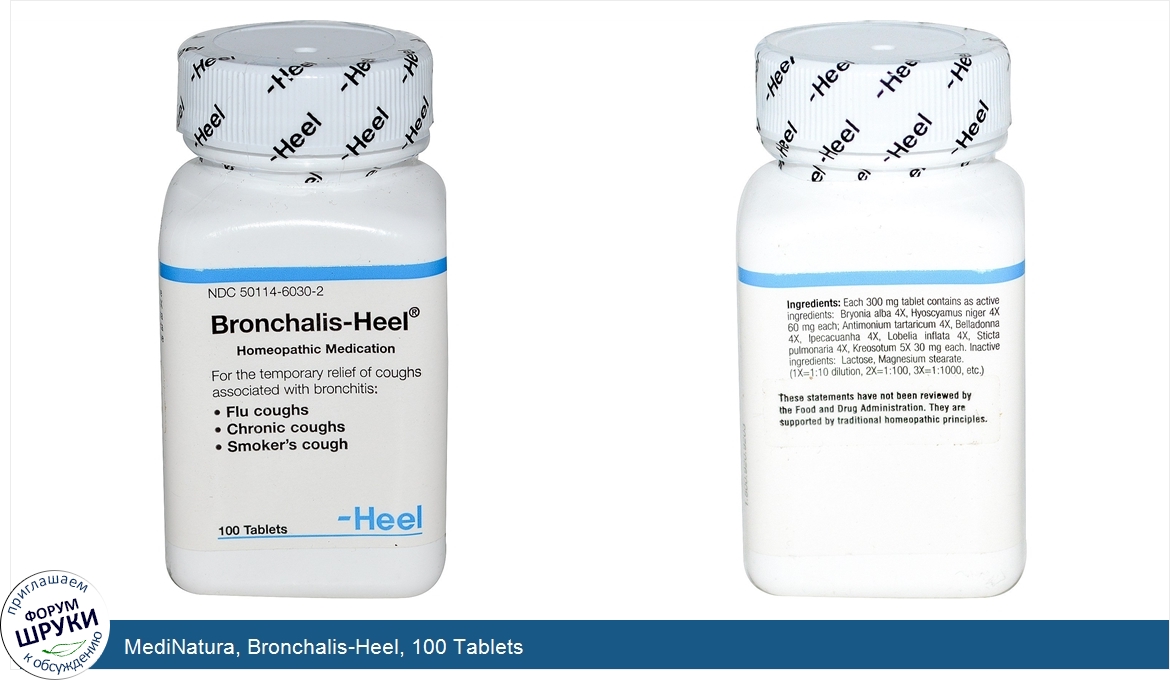 Друзья, если у вас есть отзыв/дополнение/комментарий/вопрос относительно MediNatura, Bronchalis-Heel, 100 Tablets - напишите его ответом в эту тему (это будет полезно всему сообществу в целом и вам в отдельности).