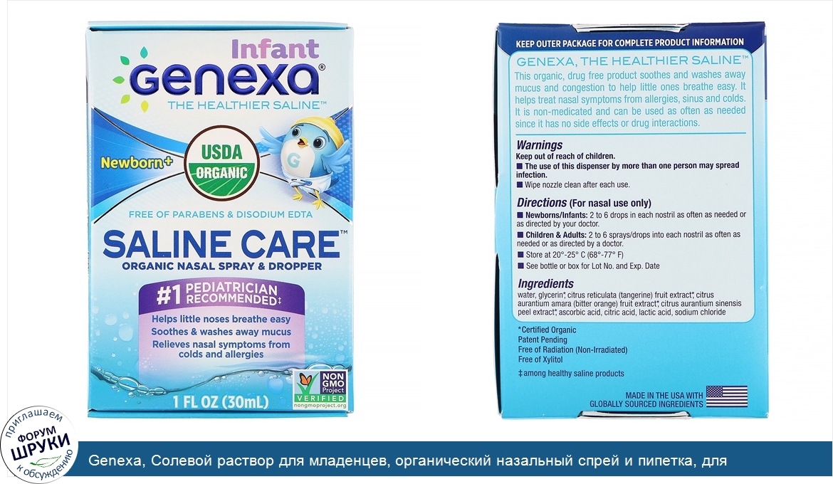Друзья, если у вас есть отзыв/дополнение/комментарий/вопрос относительно Genexa, Солевой раствор для младенцев, органический назальный спрей и пипетка, для новорожденных и более старших детей, 30мл (1жидк. унция) - напишите его ответом в эту тему (это будет полезно всему сообществу в целом и вам в отдельности).